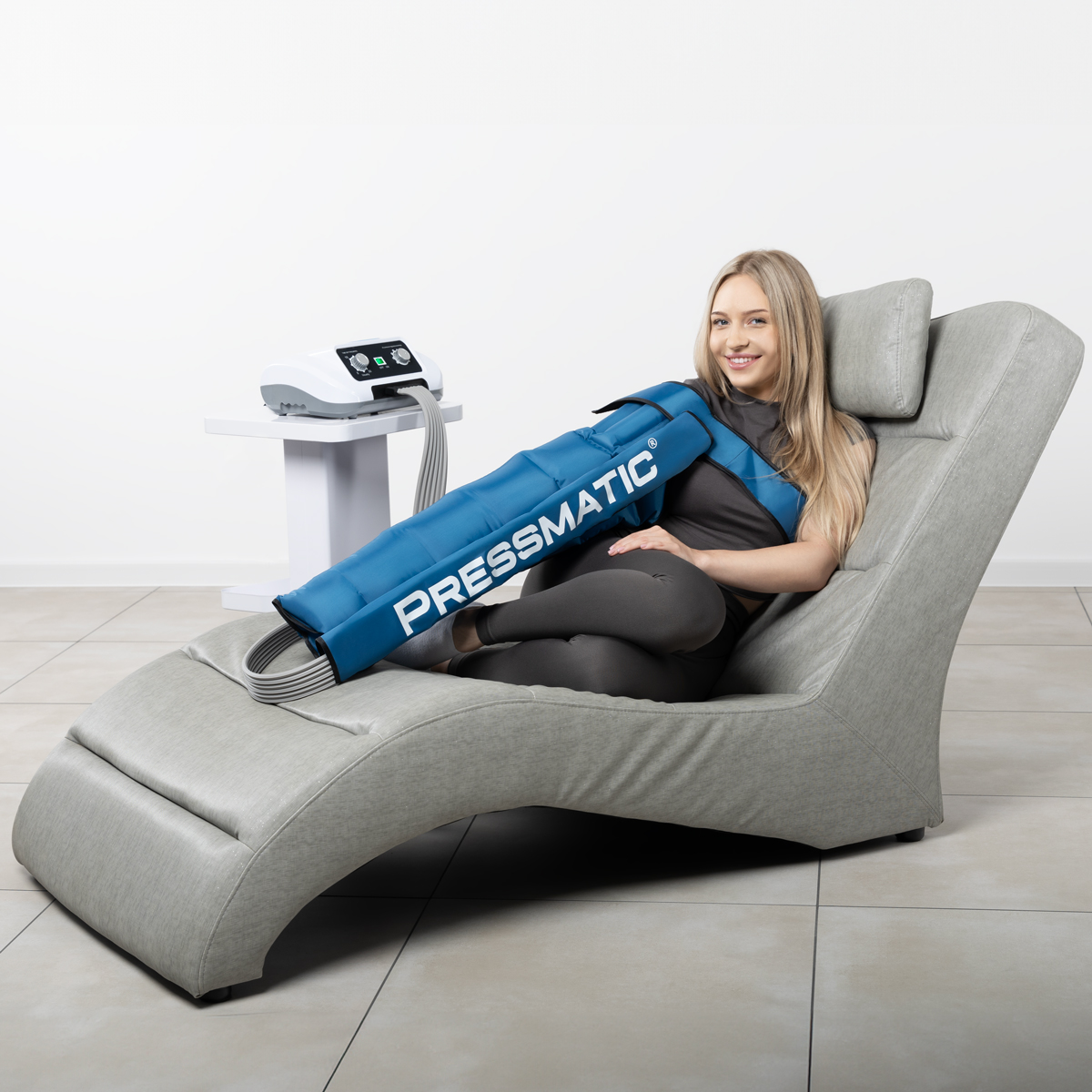 PRESSMATIC PM-6000A aus der Basic-Serie ist ein Basisgerät für die Pressotherapie – die automatische Lymphdrainage. Die einfache Konstruktion und die analoge Steuerung machen dieses Modell zu einem sehr attraktiven Preisangebot. Das Gerät wird über zwei Drehknöpfe gesteuert, mit denen die Behandlungsdauer und die Druckstärke eingestellt werden können.
