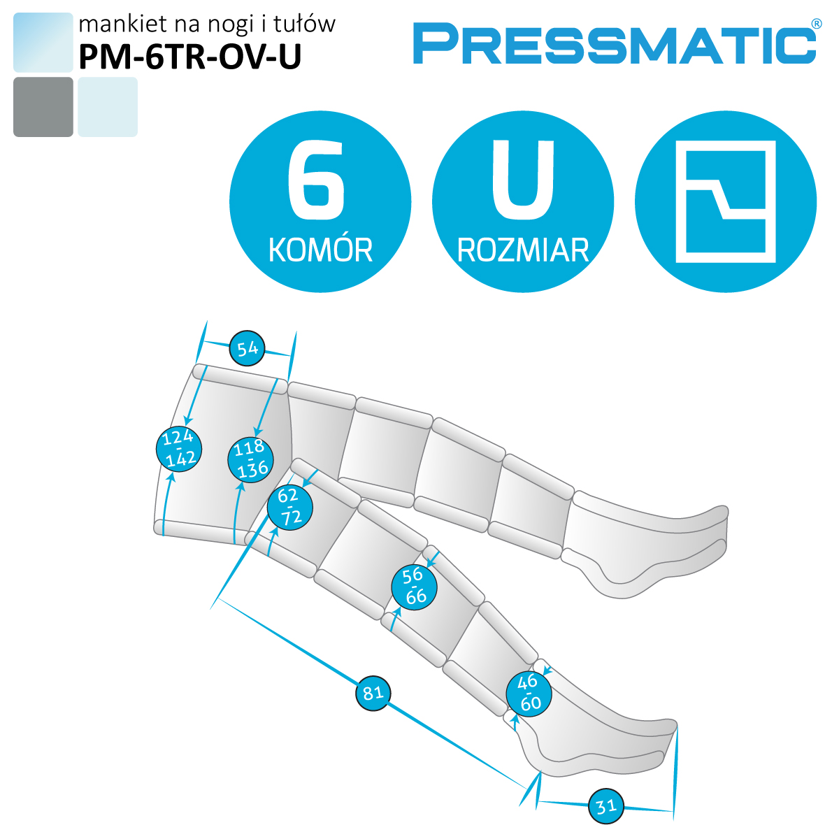 PRESSMATIC PM-6000D aus der Classic-Serie ist ein modernes, medizinisch zertifiziertes Gerät für die Pressotherapie – automatische Lymphdrainage, das zur wirksamen Reduzierung von Ödemen, Verbesserung der Durchblutung, Regeneration der Muskeln und Verschlankung der Silhouette entwickelt wurde.