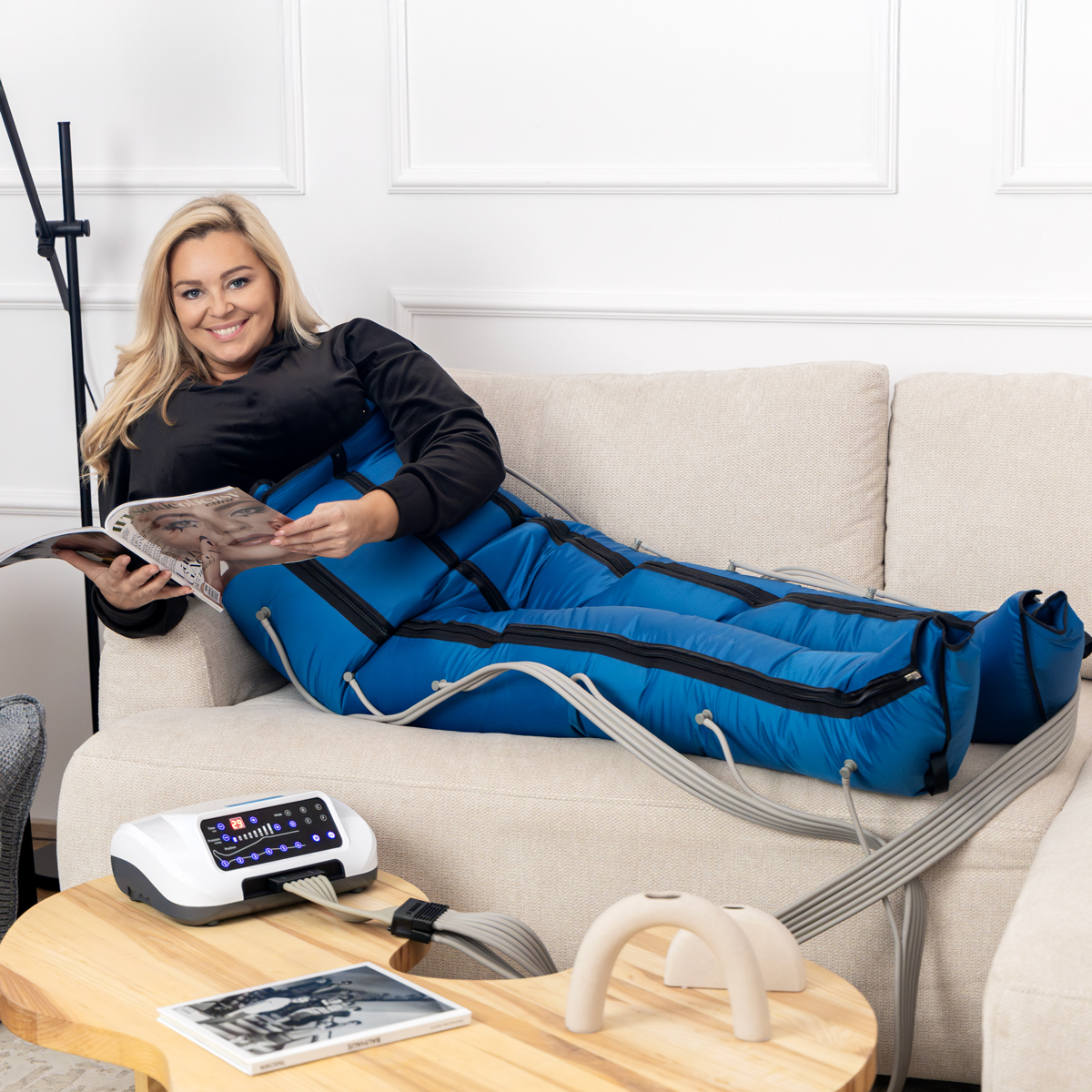 Verschiedene Programme ermöglichen sowohl eine sanfte Lymphdrainage als auch eine tiefgehende, muskelregenerierende Massage – damit ist das Gerät ideal für Sportler und Menschen mit schweren, müden Beinen.