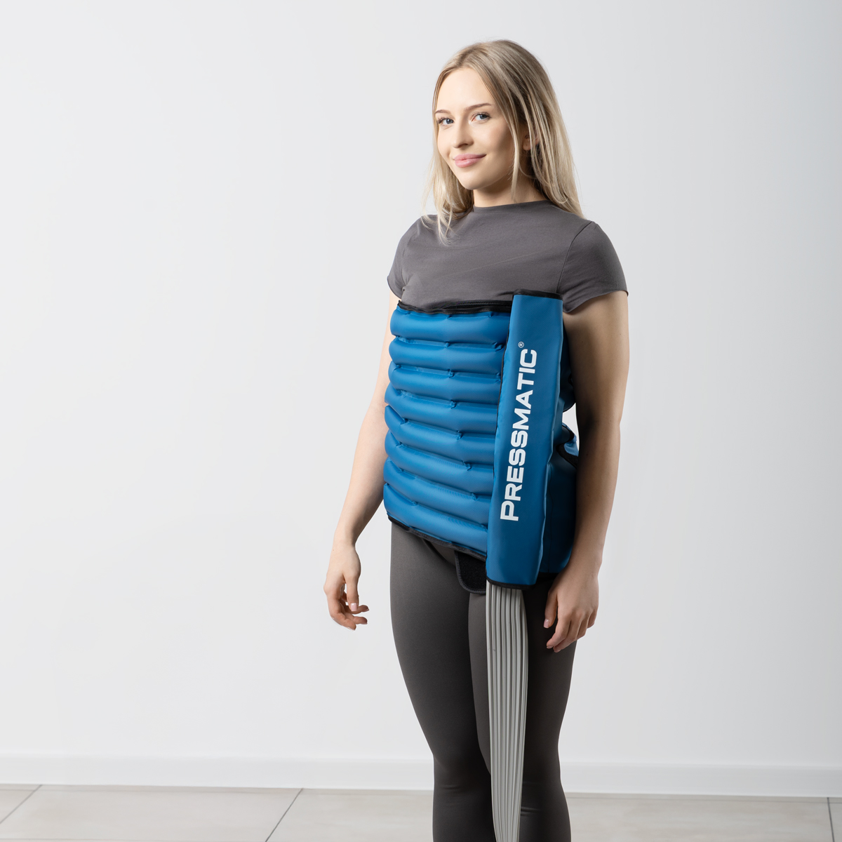 Mankiet wykonano w technologii overlapped – z komorami nakładającymi się na siebie, co zwiększa efektywność drenażu i zapobiega cofaniu się limfy oraz powstawaniu złogów.
