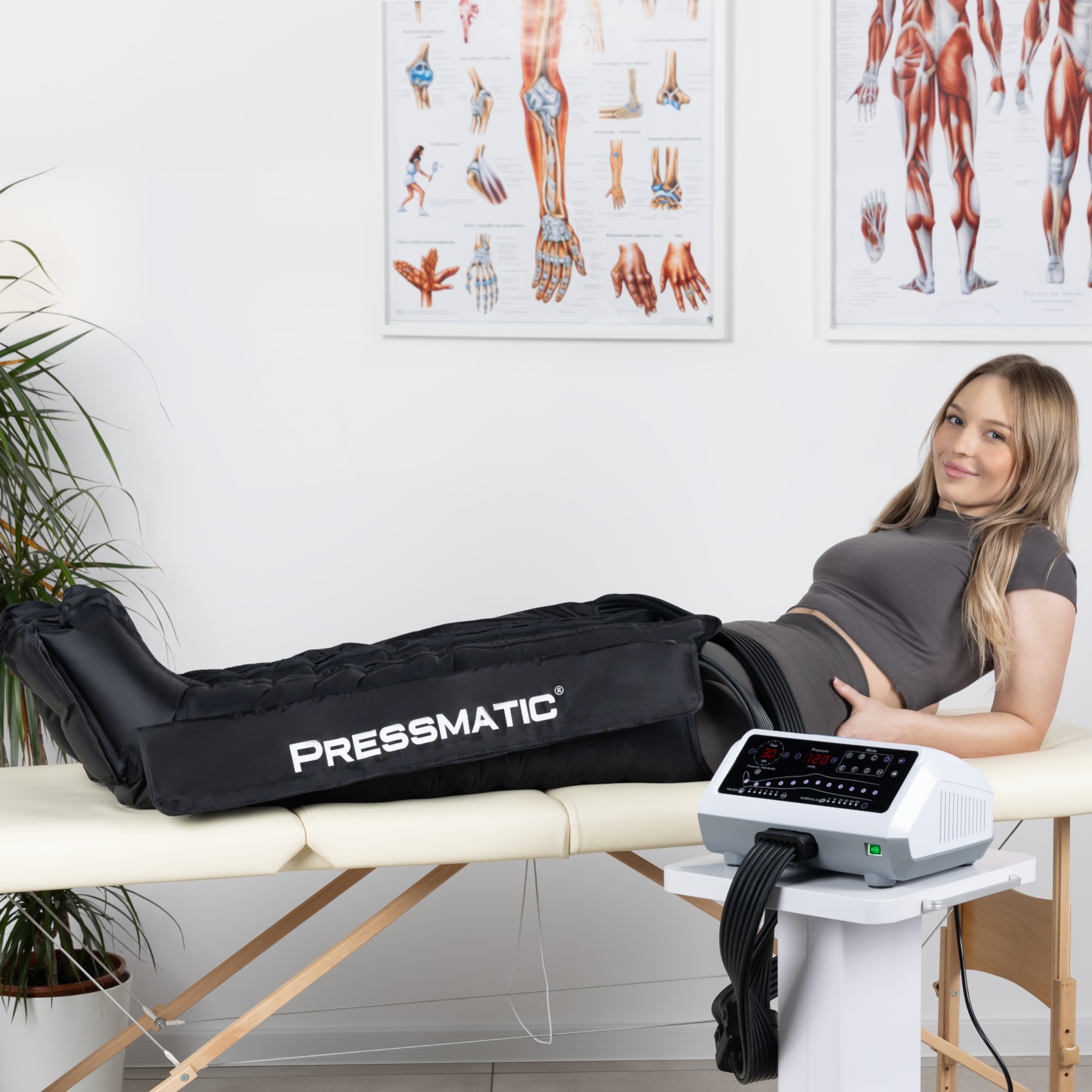 PRESSMATIC PM-12000D z serii Classic to nowoczesne, zaawansowane urządzenie do presoterapii – automatycznego drenażu limfatycznego, zaprojektowane z myślą o skutecznej redukcji obrzęków, poprawie krążenia, regeneracji mięśni i wysmuklaniu sylwetki.