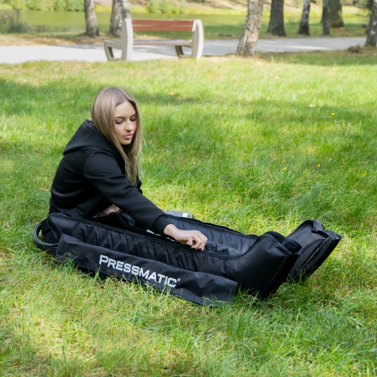 PRESSMATIC PM-12000M z serii Mobile to przenośny, zaawansowany aparat do presoterapii, czyli do automatycznego drenażu limfatycznego. Wyposażony jest w cyfrowy układ sterowania, który gwarantuje bardzo precyzyjny dobór parametrów masażu. Model PM-12000M jest zasilany akumulatorowo, więc można go używać w dowolnym miejscu, np. po treningu lub w podróży.