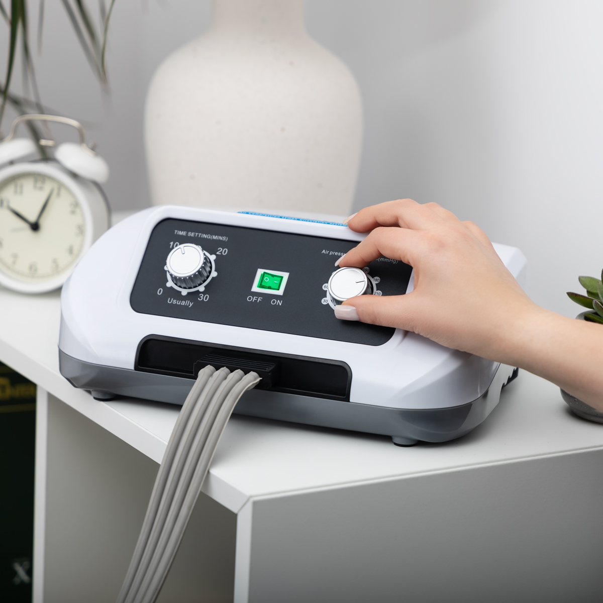 Aparat do drenażu limfatycznego PRESSMATIC PM-4000A współpracuje z mankietami 4-komorowymi. Posiada jeden tryb pracy – masaż wstępujący (fala), czyli delikatny drenaż limfatyczny. Urządzenie do presoterapii PRESSMATIC PM-4000A sprawdza się głównie w użytku domowym jako metoda terapii i profilaktyki obrzęków.