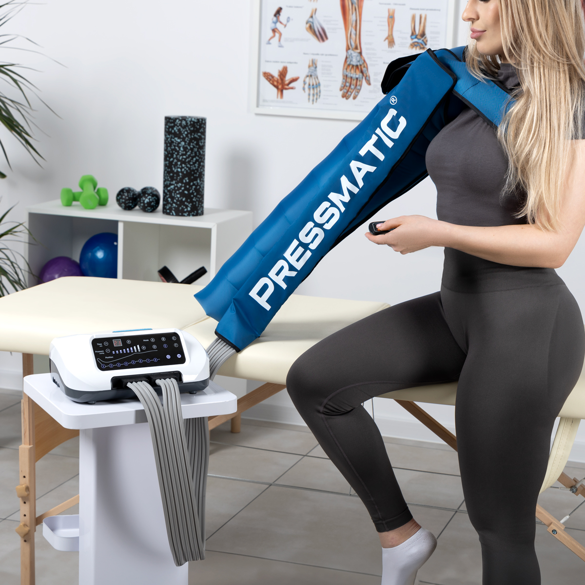 PRESSMATIC PM-8000D z serii Classic to nowoczesne, certyfikowane medycznie urządzenie do presoterapii – automatycznego drenażu limfatycznego, zaprojektowane z myślą o skutecznej redukcji obrzęków, poprawie krążenia, regeneracji mięśni i wysmuklaniu sylwetki.