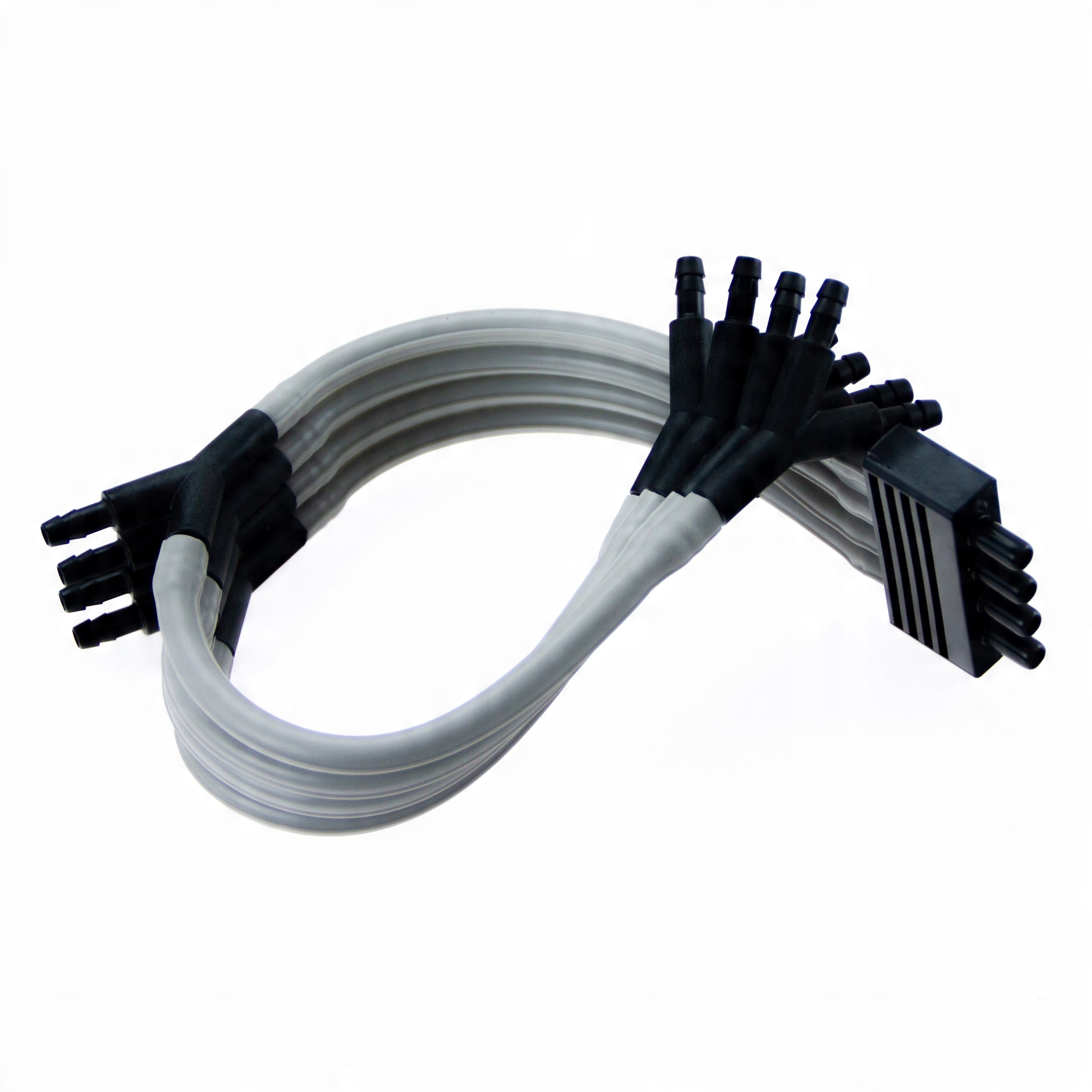 Trójnik powietrzny do mankietów 4-komorowych umożliwia jednoczesne podłączenie trzech mankietów do jednego urządzenia Pressmatic.
